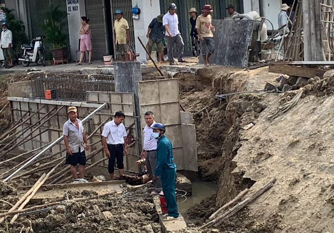 Theo thông tin ban đầu, khoảng 15h30 cùng ngày, bà Lưu Thị C. (SN 1974, trú thôn Phước Khánh, xã Hòa Trị) làm công việc phụ hồ tại công trình cầu dân sinh. Khi đang cột sắt để chuẩn bị đổ bê tông thì đất trên taluy bờ mương sạt và vùi lấp bà C.