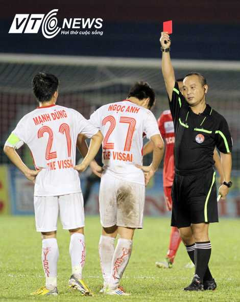 | Chu Ngọc Anh nhận thẻ đỏ rời sân (Ảnh: VSI) |