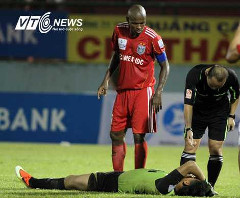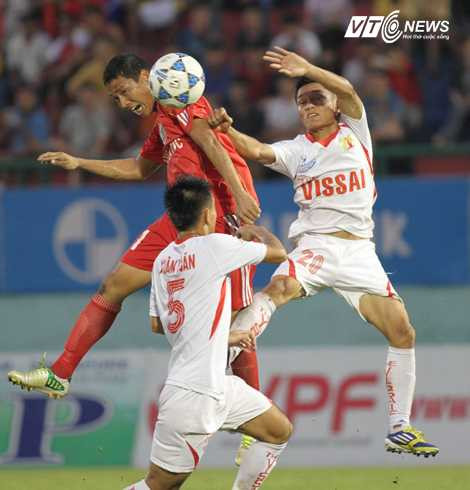 Phút 23: BÓNG VỪA TRÚNG CỘT DỌC... Thay vì căng ngang, Vũ Phong bất ngờ kết thúc nhanh vào góc gần khung thành của V.Ninh Bình. Rất tiếc, bóng lại dội cột dọc bật ra. Ngay sau đó Philani có pha đánh đầu cận thành nhưng thủ thành Văn Hưng đã xuất sắc cứu thua cho đội khách.