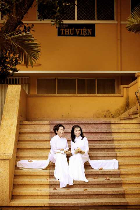 | Từ nét đẹp ấy trong cuộc sống, Phương Dung đã 'rủ' Trang Mỹ Dung về thăm trường Gia Long (nay là trường Nguyễn Thị Minh Khai) thực hiện bộ ảnh kỷ niệm tình bạn đẹp này |