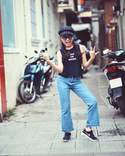 Ca sĩ nhí sinh năm 2003 diện quần short jeans.