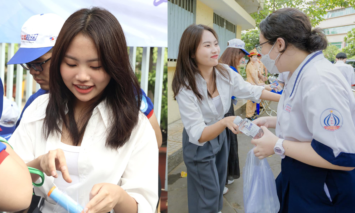Hình ảnh giản dị và thân thiện của Phương Mỹ Chi nhận được nhiều lời khen của khán giả. Cô tự tay phát nước cho các sĩ tử cũng như các tình nguyện viên.