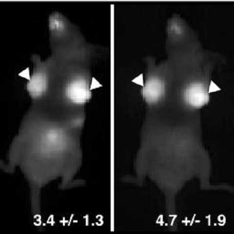 Các nhà nghiên cứu đã thử nghiệm thuốc trên chuột mang khối u ung thư vú, có đến 60% tác nhân huỳnh quan đã hấp thụ vào máu của chuột. Chúng gắn rất mạnh vào tế bào ung thư khiến các tế bào nảy nổi bật hẳn so với các mô lành xung quanh.