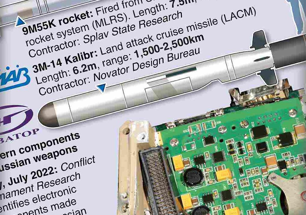 Nhiều mẫu vũ khí tấn công chính xác của Nga đều ít nhiều sử dụng các công nghệ hoặc linh kiện điện tử do phương Tây chế tạo. (Ảnh: Graphic News)