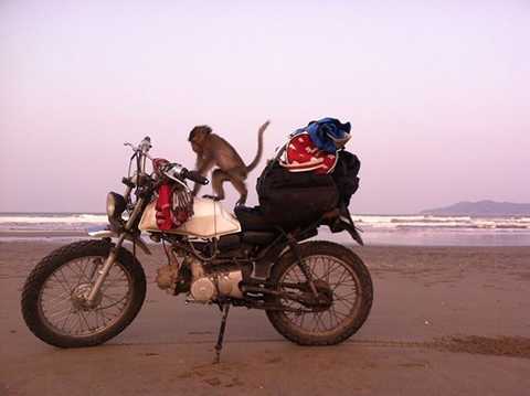 | Chú khỉ này chính là lý do khiến Quốc Toản quyết định về quê ăn Tết bằng xe máy. |