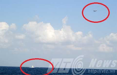 Chưa dừng lại, từ phía đảo gần đó, một máy bay quân sự loại săn ngầm hiện đại của Trung Quốc cũng được điều động bay ra quần thảo liên tục trên tàu SAR 412 để uy hiếp. Trên biển thì 2 tàu có trang bị vũ khí uy hiếp, trên không thì máy bay săn ngầm của họ quần thảo.
