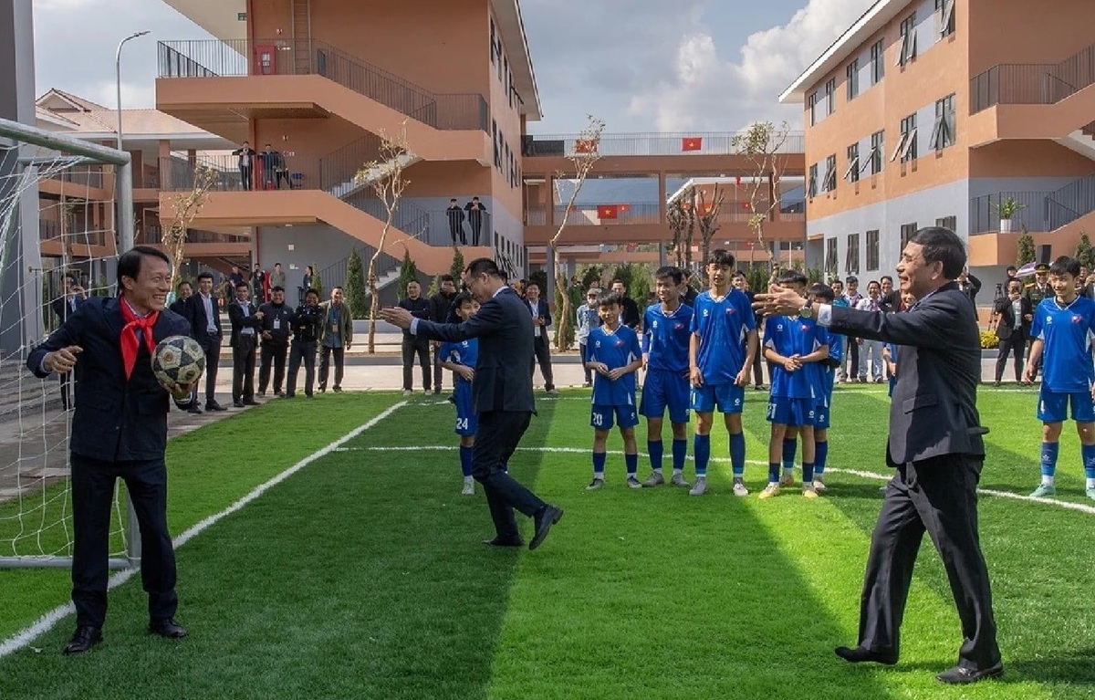 Sáng 31/1, nhân dịp khánh thành Trường Phổ thông Nội trú liên cấp Tiểu học, THCS Si Pa Phìn (xã Si Sa Phìn, tỉnh Điện Biên), Bộ trưởng Quốc phòng Phan Văn Giang, Bộ trưởng Công an Lương Tam Quang chụp ảnh lưu niệm cùng các thành viên Đội thiếu niên PVF Công an nhân dân và Đội thiếu niên Điện Biên.