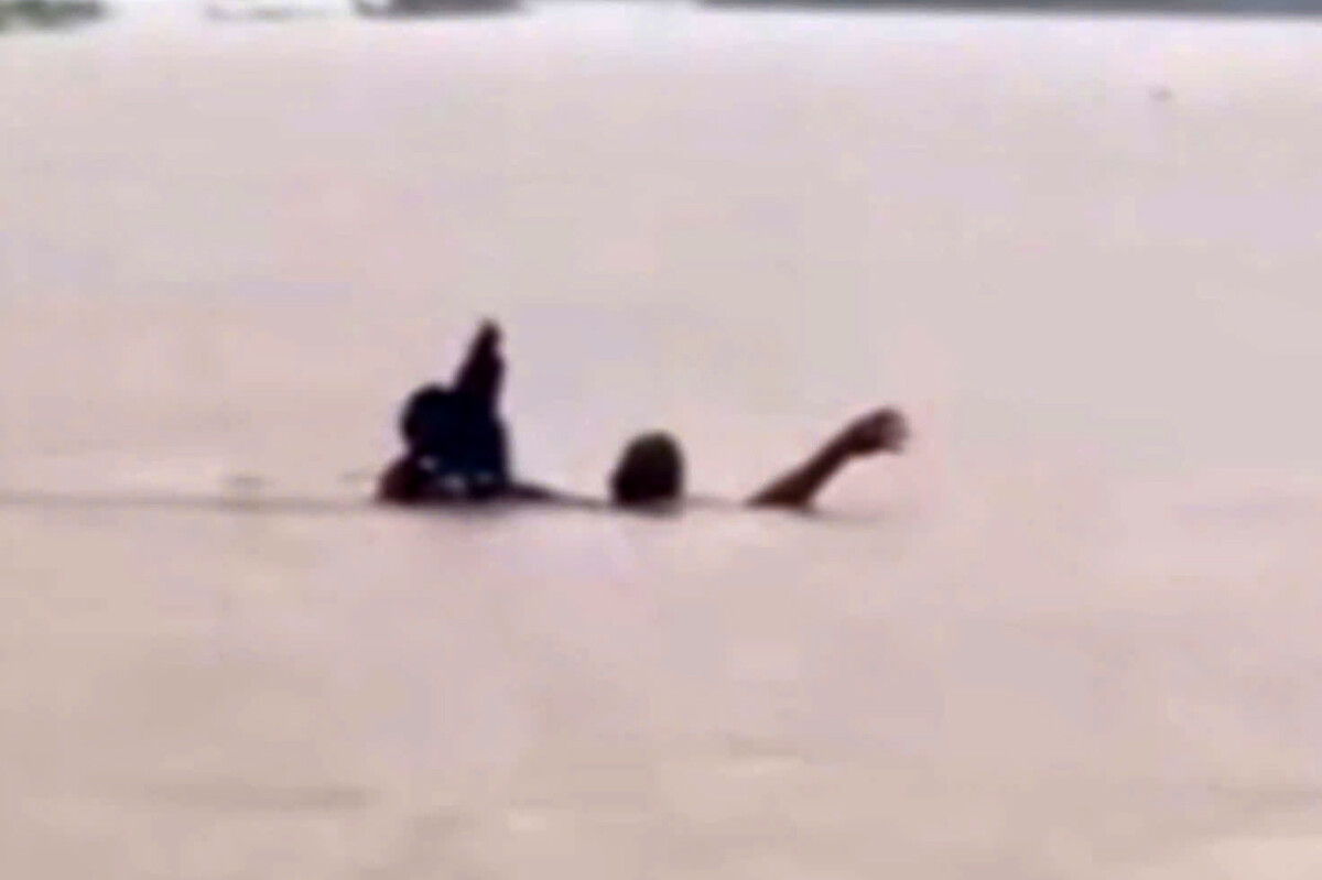 Lúc sau, một người đàn ông đã bơi ra tiếp cận và cứu cháu vào bờ an toàn.
