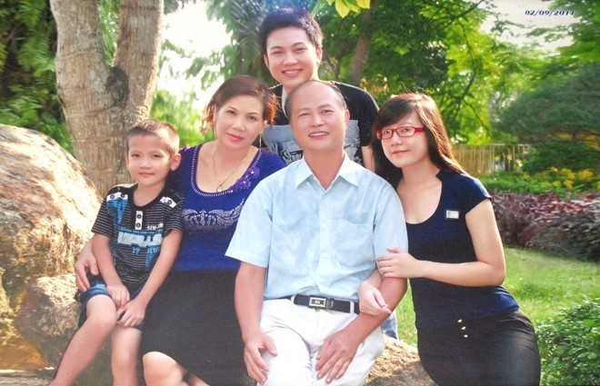 | Nữ sinh Quyên (đeo kính, ngoài cùng bên phải) trong bức ảnh chụp cùng gia đình. |