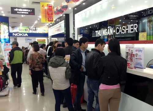 | Quầy thu ngân luôn tấp nập khách hàng thanh toán |