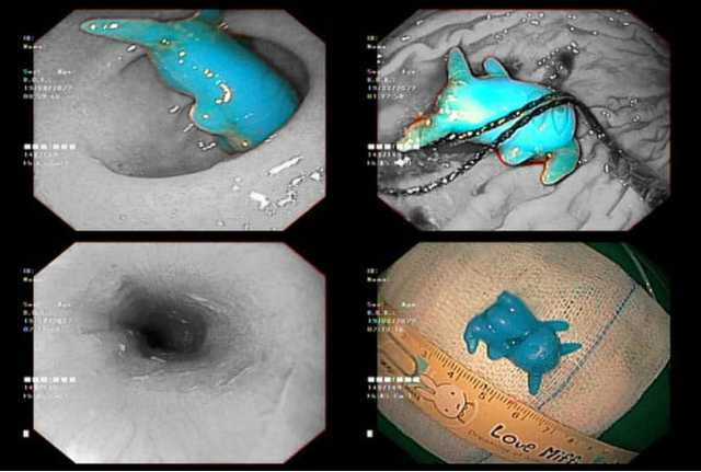 Dị vật là đồ chơi pikachu bằng nhựa, có kích thước 2x2, 5x1cm.
