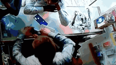 Chủ cửa hàng ở Lalitpur, Uttar Pradesh, Ấn Độ đang sửa chiếc điện thoại, viên pin bất ngờ phát nổ, ngọn lửa bùng phát trùm lên người này trong tích tắc.