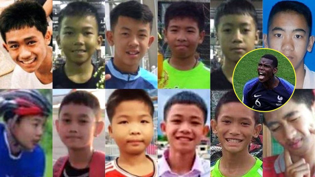 Qua tài khoản Twitter cá nhân, tiền vệ Paul Pogba gửi niềm vui chiến thắng của anh tới 13 thành viên của đội bóng Lợn Hoang tại Thái Lan, những người vừa được giải cứu sau nhiều ngày mắc kẹt trong hang Tham Luang. Cầu thủ của đội tuyển Pháp cho rằng 12 cậu bé và huấn luyện viên của họ mới là những người hùng đích thực.