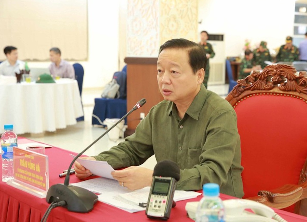 Phó Thủ tướng Trần Hồng Hà phát biểu chỉ đạo tại cuộc họp tại Sở Chỉ huy tiền phương (Nghệ An) về tình hình tác động của bão Kajiki (bão số 5). (Ảnh: Báo Điện tử Chính phủ)