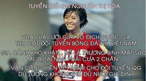 Bên cạnh đó, những câu chuyện về gia cảnh, cách ăn mừng chiến công của các cô gái trong đội tuyển nữ Việt Nam cũng được nhắc lại. Được chia sẻ nhiều nhất chính là câu chuyện về Nguyễn Thị Hòa - tiền đạo hàng đầu của tuyển nữ Việt Nam, xếp thứ 28 thế giới nhưng vẫn không kiếm đủ để chăm lo cho bố mẹ.