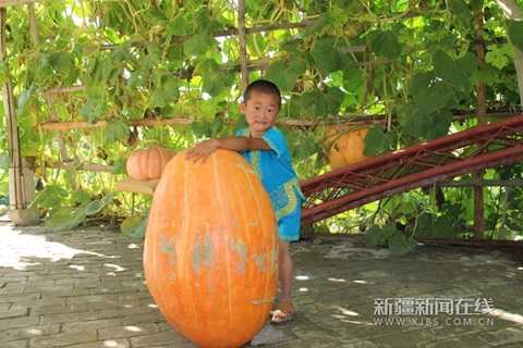 Bí ngô khổng lồ với cân nặng khoảng 10kg đã khiến mọi người kinh ngạc. Tuy nhiên, mới đây nông dân Tân Cương (Trung Quốc) thu hoạch được bí ngô nặng tới 48kg. Chiều cao của quả bí ngô khi dựng lên gần bằng một em bé 6 tuổi.
