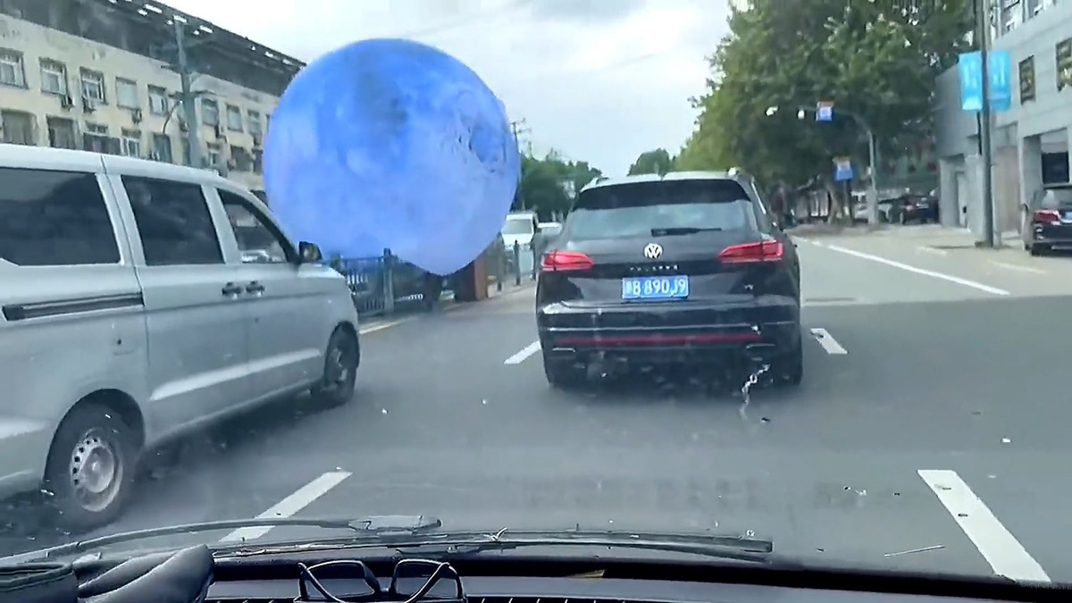 Quả bóng khổng lồ xuất hiện trên phố, giao thông rối loạn