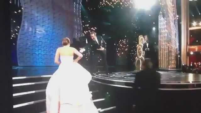 (VTC News) - Ngôi sao 9X Jennifer Lawrence đã quá hồi hộp khi được xướng tên giải Nữ diễn viên chính xuất sắc nhất, cô đã ngã khi bước lên sân khấu.