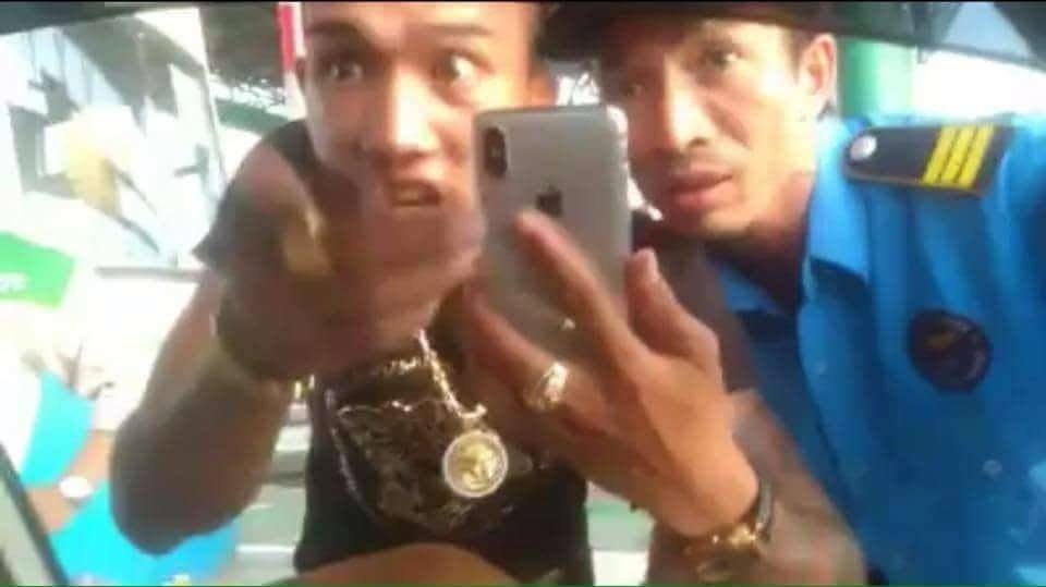 Trong lúc người phụ nữ này đang giải thích với nhân viên trạm thu phí và bảo vệ, một thanh niên xăm trổ xuất hiện, đứng chỉ tay chửi bới, dọa nạt với những lời lẽ xúc phạm vị khách nữ. Không những thế, thanh niên xăm trổ này còn có những hành động dung tục, vô văn hóa trước mặt người phụ nữ.
