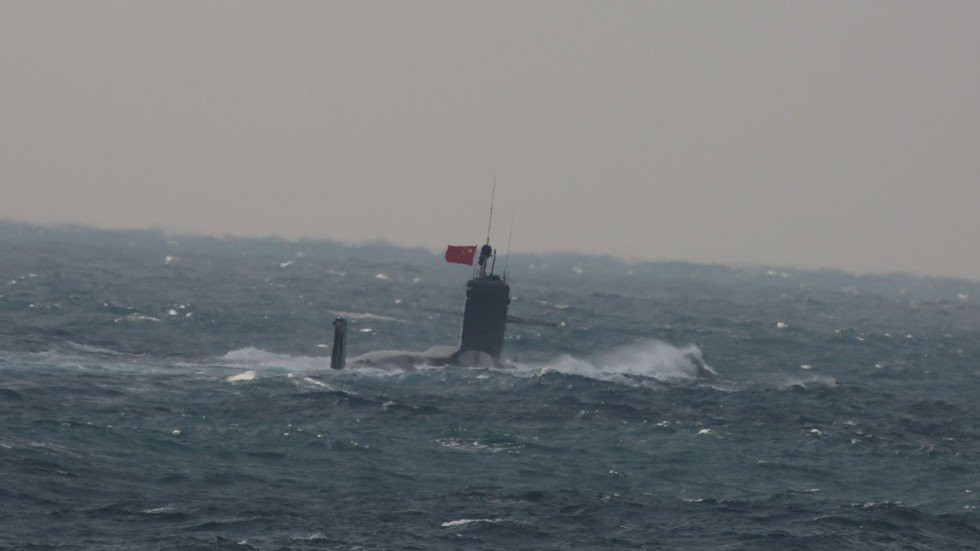 Tàu ngầm Trung Quốc lớp Shang của Trung Quốc nổi lên trên mặt nước khi di chuyển ở vùng biển quốc tế.