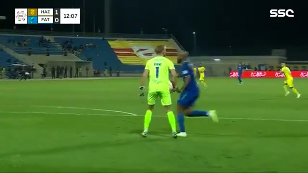 Chạy tới đập tay thủ môn, hậu vệ Fahad Al-Harbi lại đập trúng quả bóng khiến cả đội nhận ngay quả phạt đền.