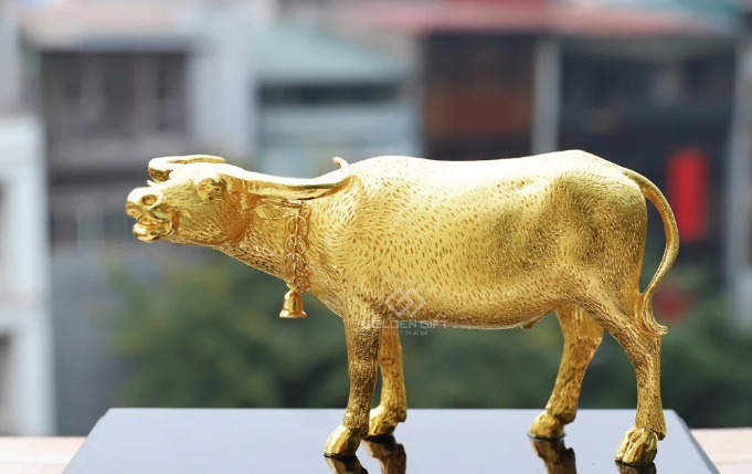Năm nay, hàng loạt mẫu tượng trâu mạ vàng được trình làng với nhiều mức giá khác nhau, phục thuộc vào chất liệu và kích thước. (Ảnh: Golden Gift Việt Nam)