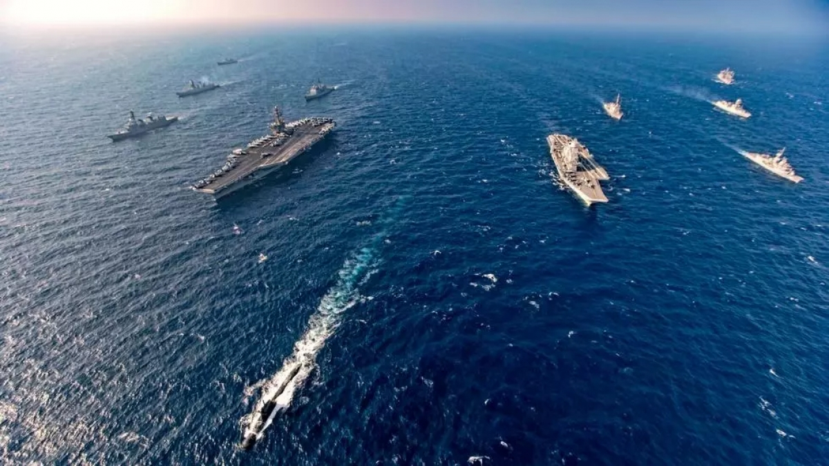 Hải quân của các nước thuộc nhóm Bộ Tứ tham gia cuộc tập trận chung Malabar ngày 17/11/2020. (Ảnh: AP)