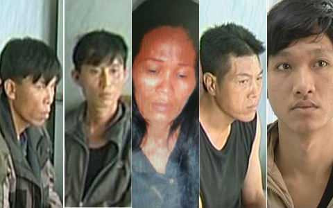 | Từ trái sang: Sơn "vổ", Chiến, Cúc 'năm', Tường... nổi danh về trộm cướp trên sông ở Hải Phòng. |
