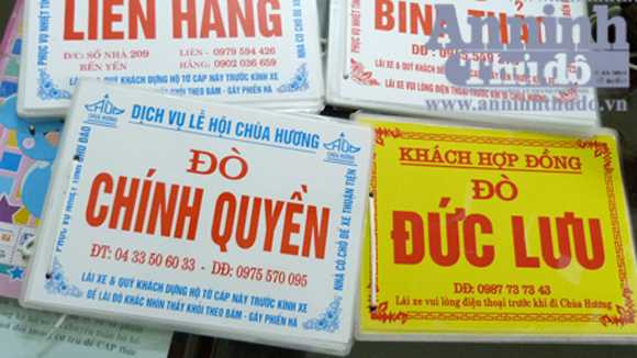 Cơ quan công an đã thu giữ 6 xe máy và gần 30 biển quảng cáo có ghi sẵn tên, số điện thoại liên lạc của chủ đò. Các đối tượng này khai nhận, mỗi khách du lịch muốn thuê đò hoặc tham gia các tour trẩy hội phải nộp trước từ 85 đến 100 nghìn đồng. Đổi lại, “cò mồi” sẽ cấp cho lái xe một tấm biển quảng cáo để gắn lên trước kính với mục đích tránh sự đeo bám của các nhóm “cò mồi” khác.6 "cò mồi" bị bắt giữ trong sáng 18-2