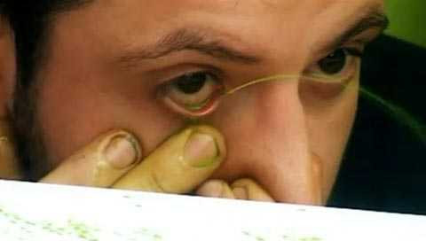 Chàng trai 27 tuổi có thể tạo nên những tác phẩm hội họa theo cách rất đặc biệt của mình. Anh sử dụng màu nước pha loãng rồi bắn chúng qua hốc mắt. Điều khó tin là mỗi lần "vẽ", lượng màu nước mà anh phun qua hốc mắt của mình lên tới 800 ml cho mỗi bức tranh.