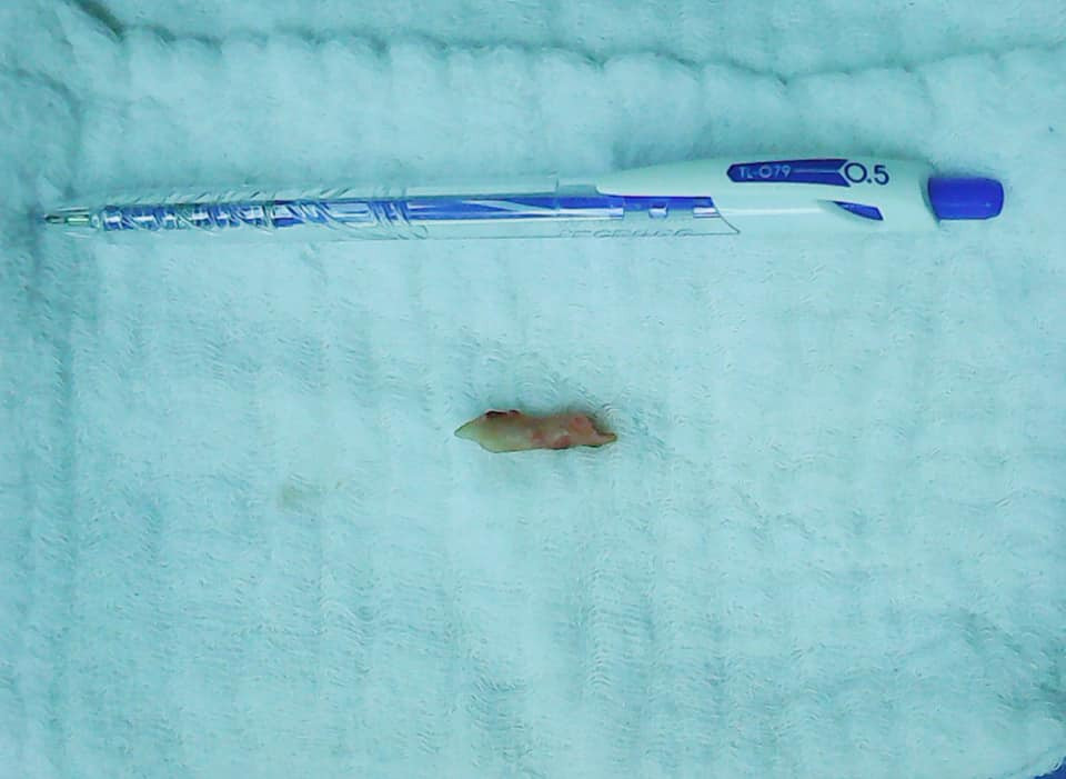 Mảnh xương heo được gắp ra từ trong thực quản của bả Đ. (Ảnh: BS Thuyên)