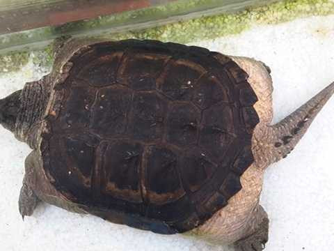Con rùa nặng hơn 6 kg, to bằng chiếc đĩa loại lớn, đuôi rùa dài hơn gang tay và mọc nhiều gai.