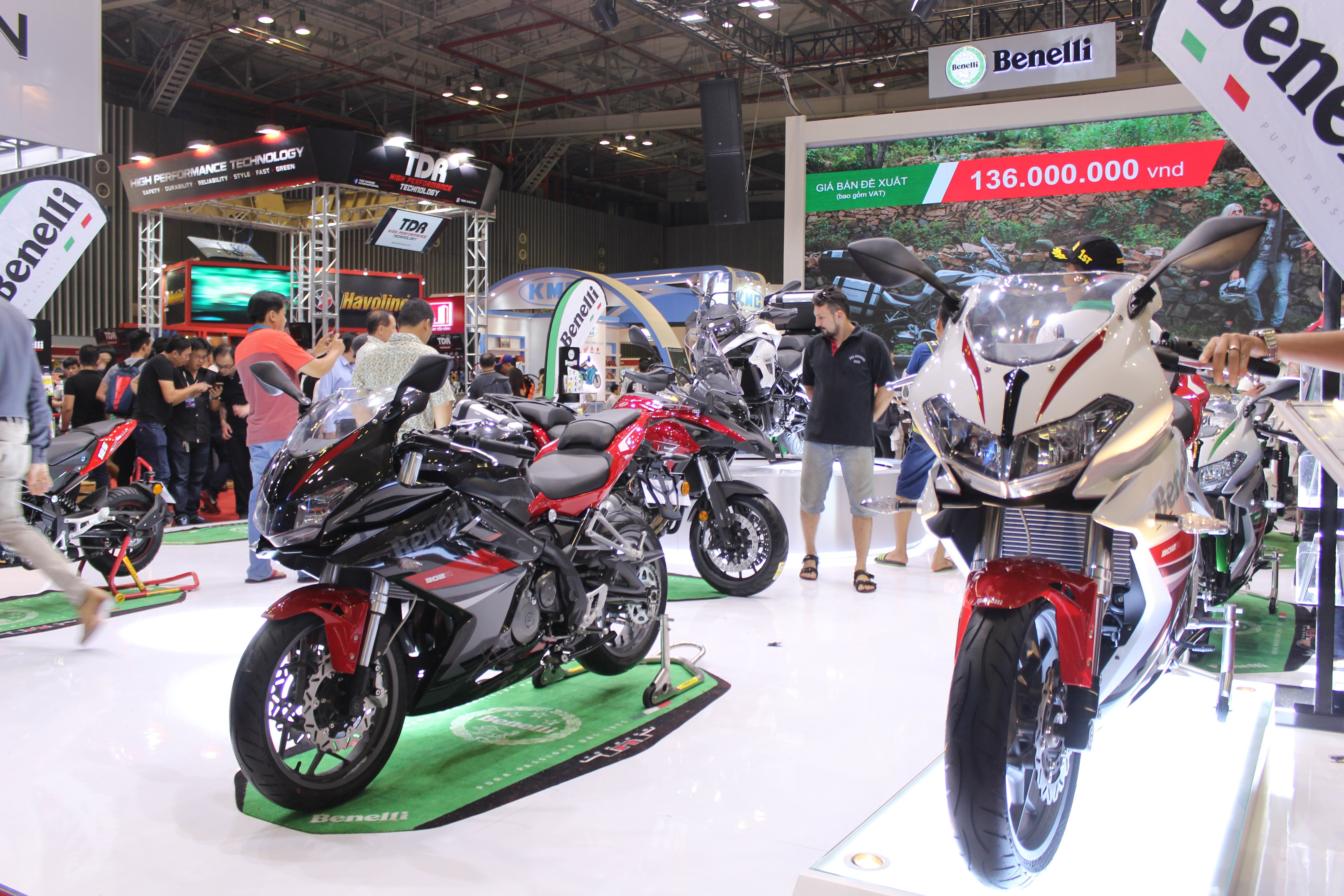 "Hoa hậu" của Benelli trong triển lãm lần này là adventure-touring Benelli TRK 502 hoàn toàn mới, được trang bị động cơ DOHC, xy-lanh đôi 8 van, làm mát bằng dung dịch, dung tích 500 cc, phun xăng điện tử, cho công suất 47 mã lực tại 8.500 vòng/phút và mô-men xoắn cực đại 45 Nm tại 5.000 vòng/phút, đi kèm hộp số 6 cấp; với 136 triệu đồng (bản tiêu chuẩn không thùng),...