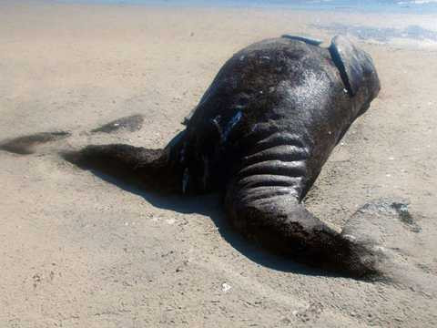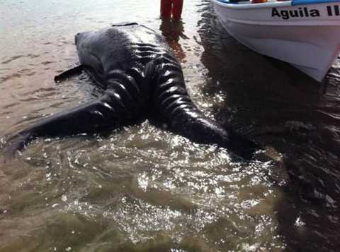 | Con quái vật biển gây kinh hãi này được phát hiện dạt vào bờ biển Laguna Ojo de Liebre, Mexico và khi phát hiện, nó đã không còn thở. |
