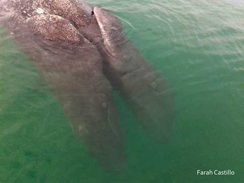 | Lạ lùng ở chỗ, cặp cá voi này chỉ có chiều dài 2,1m trong khi thông thường những con cá voi xám mới sinh thường có chiều dài trung bình từ 3m đến 5m. |