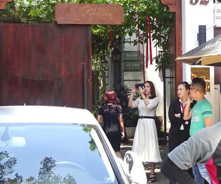 Một chiếc xe cần cẩu lập tức chạy đến trước cửa trung tâm thẩm mỹ Khơ Thị
