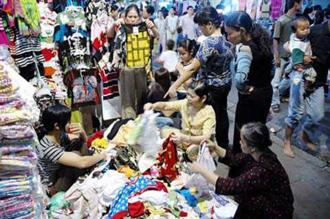 Khung cảnh buôn bán "hàng Trung Quốc" ở chợ Đồng Xuân, Hà Nội vẫn tấp nập như không hề có chuyện gì xảy ra sau thông tin quần áo trẻ em xuất xứ từ nước này chứa chất gây ngớ ngẩn, mặc dù các bà mẹ "thông minh" đã đổ xô đi mua hàng mang nhãn hiệu Việt.