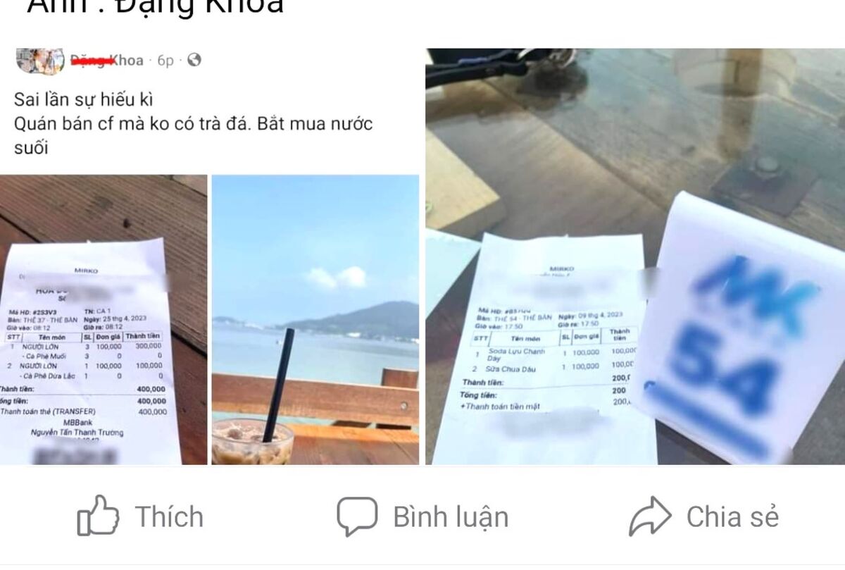Trước đó, ngày 25/4, mạng xã hội đăng tải bài viết kèm hình ảnh hóa đơn tính tiền của quán Mirko với nội dung “Nhìn biil đi một lần không có lần thứ 2 luôn... Một ly 100 cành, nắng cháy đầu không có một ly trà đá, không dám sống ảo nữa luôn...”.