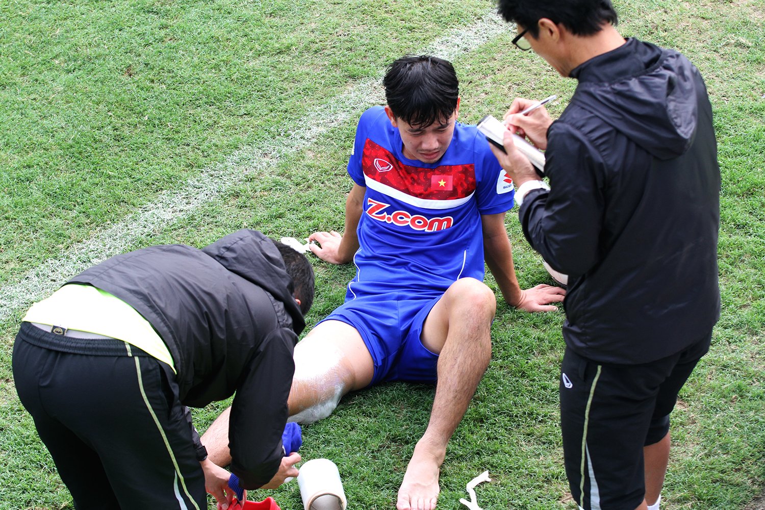 Sau buổi tập, Minh Vương cho biết anh bị rách cơ đùi.