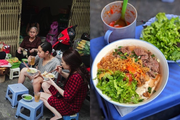 Không chỉ độc đáo với phong cách ăn bưng, điều đặc biệt khi đến đây là quán không sử dụng thìa, bởi vậy càng khiến cho nhiều người thích thú hơn. Còn gì bằng khi ngồi trên chiếc ghế thấp trước con ngõ nhỏ, bê bát bún riêu cua thơm lừng, nóng hổi thưởng thức, rồi húp xì xụp đến tận những miếng nước cuối cùng, nhắm mắt tận hưởng hương vị để nhớ về một Hà Nội xưa, thời hàng quán sang trọng chưa “mọc lên như nấm” như bây giờ.