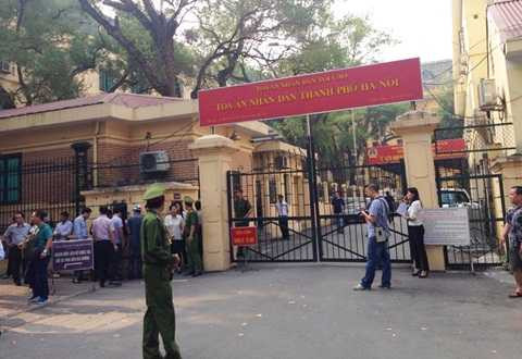 Ngay từ sáng sớm, an ninh trước cổng TAND TP Hà Nội đã được thắt chặt. Phiên xử thu hút sự quan tâm của hàng chúc cơ quan báo, đài. Tác nghiệp tại phiên tòa, các phóng viên được bố trí vào một phòng theo dõi phiên xử qua màn hình ti vi.