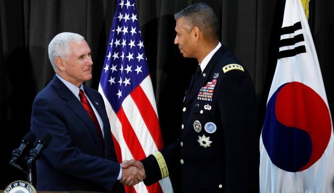 Chiều 16/4, phát biểu trước đông đảo binh sĩ Mỹ tại một căn cứ ở Hàn Quốc, Phó Tổng thống Mỹ Mike Pence nhấn mạnh rằng các cam kết của nước Mỹ đối với đồng minh Hàn Quốc chưa bao giờ mạnh mẽ hơn lúc này.