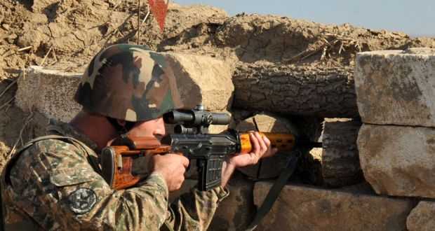 | Bính sĩ Armenia chĩa súng về phía Azerbaijan ở biên giới 2 nước |