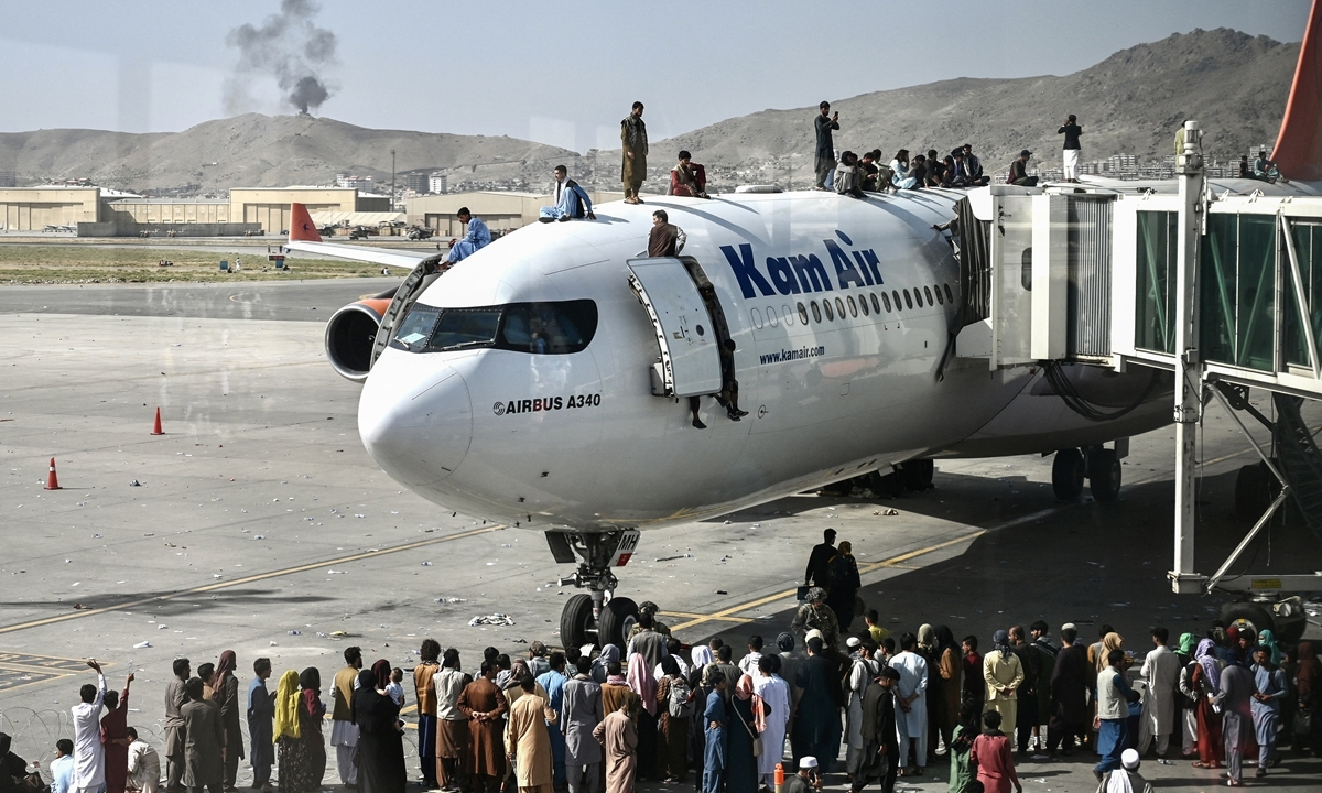 Quân đội Mỹ tạm dừng hoạt động tại sân bay Kabul sau khi nhiều người Afghanistan tràn ra đường băng.