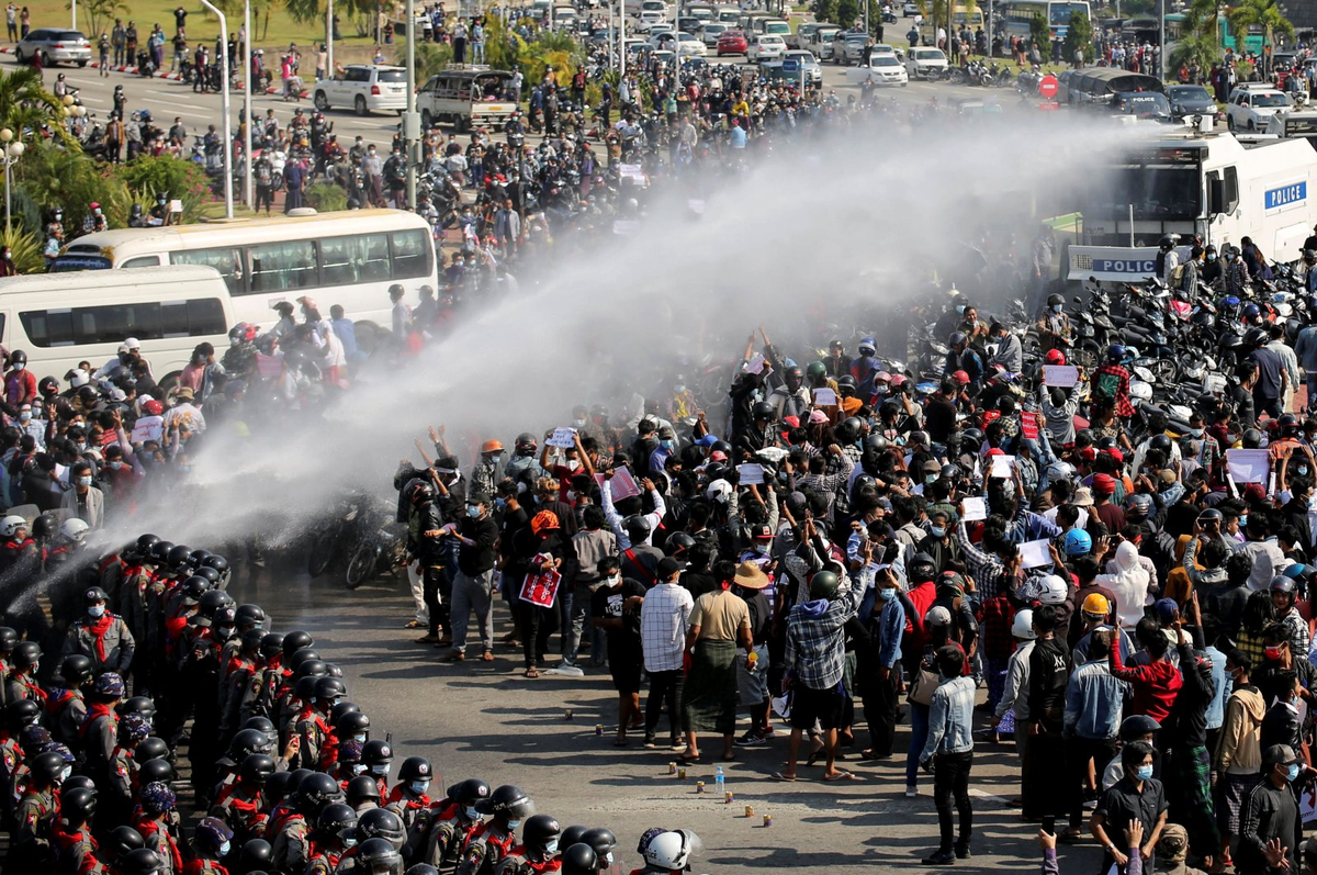Cụ thể, trong cuộc biểu tình sáng ngày 9/2, nhiều nhân chứng trông thấy cảnh sát bắn đạn cao su, xịt hơi cay và dùng vòi rồng để giải tán đám đông.