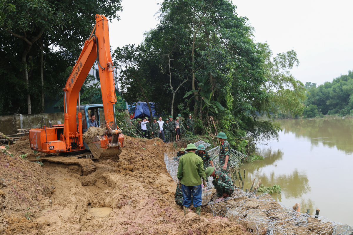 Suốt ngày đêm, các cán bộ, chiến sỹ quân đội gia cố những điểm sạt lở, cứu bờ sông Ngàn Mọ (Cẩm Xuyên, Hà Tĩnh) khỏi nguy cơ bị “hà bá" xâm lấn.