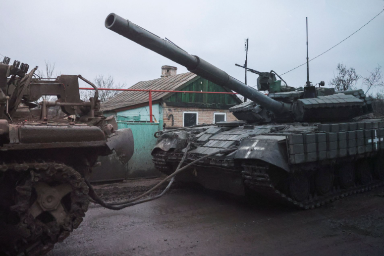 Xe tăng trên đường gần Bakhmut. (Ảnh: Reuters)