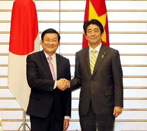 | Chủ tịch nước Trương Tấn Sang và Thủ tướng Nhật Bản Shinzo Abe. Ảnh TTXVN |