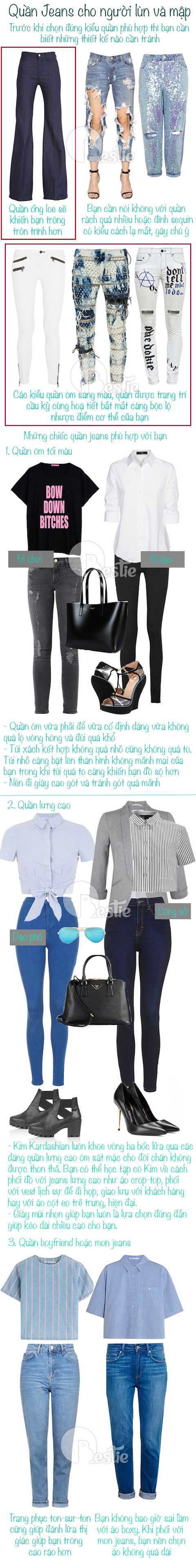 Không phải ai cũng may mắn sở hữu thân hình bốc lửa như Kendall Jenner, Jennifer Lopez... hoặc thậm chí dù nhỏ bé nhưng vẫn rất quyến rũ như Eva Longoria, Jennifer Love Hewitt thì bạn cũng đừng quá lo lắng. VÌ có thể bạn không mặc được đầm bodycon, áo crop-top gợi cảm nhưng chiếc quần jeans - trang phục mà bất cứ cô gái nào cũng sở hữu sẽ không bao giờ quay lưng với bạn. Có rất nhiều kiểu quần khi mặc sẽ tôn dáng, giúp bạn khắc phục nhược điểm cơ thể.