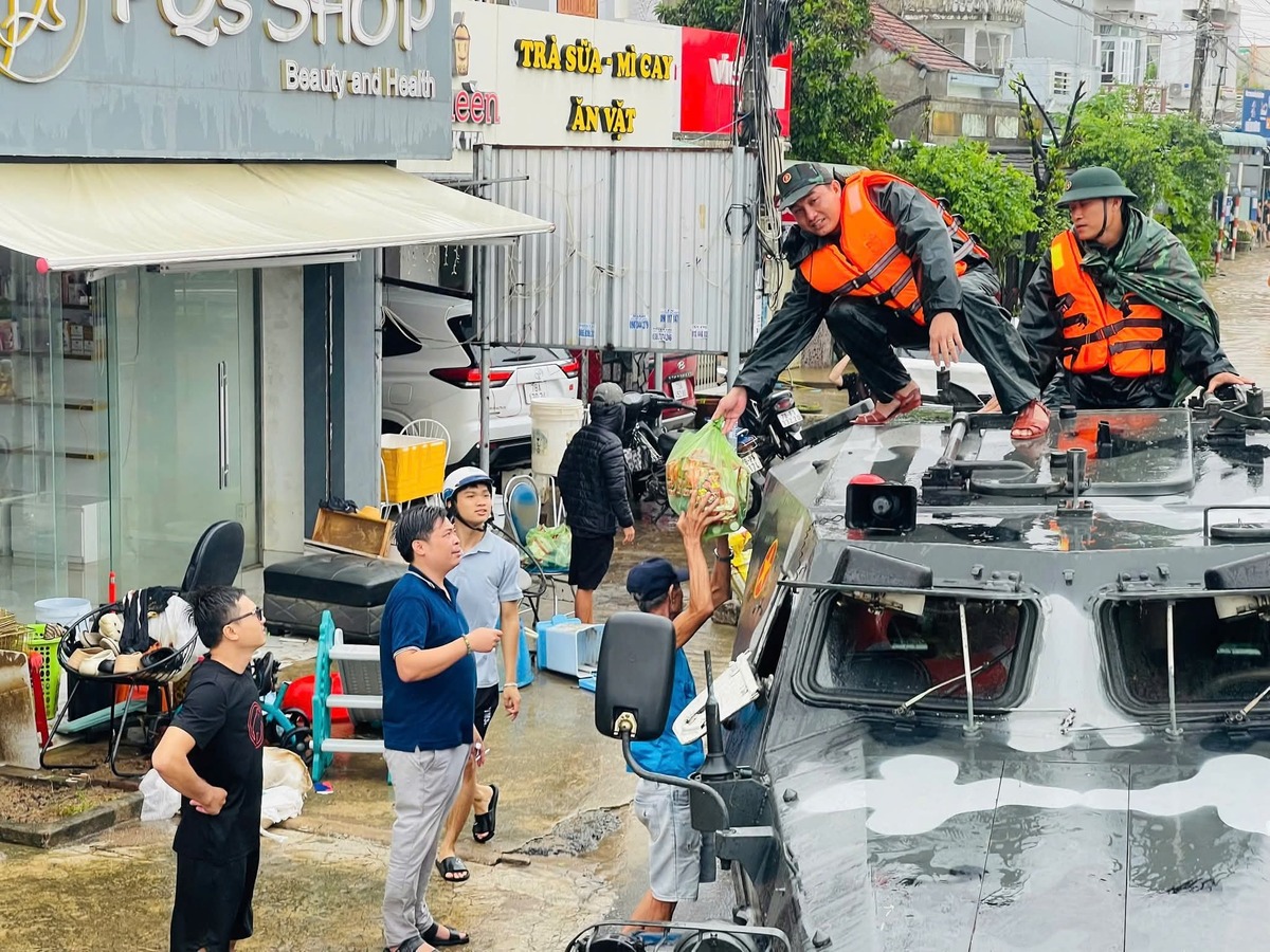 Trước tình hình khẩn cấp, Quân khu 5 điều động lực lượng và phương tiện đặc chủng, dùng xe thiết giáp vượt nước xiết, tiếp tế hàng nghìn suất nhu yếu phẩm cho người dân vùng ngập sâu.